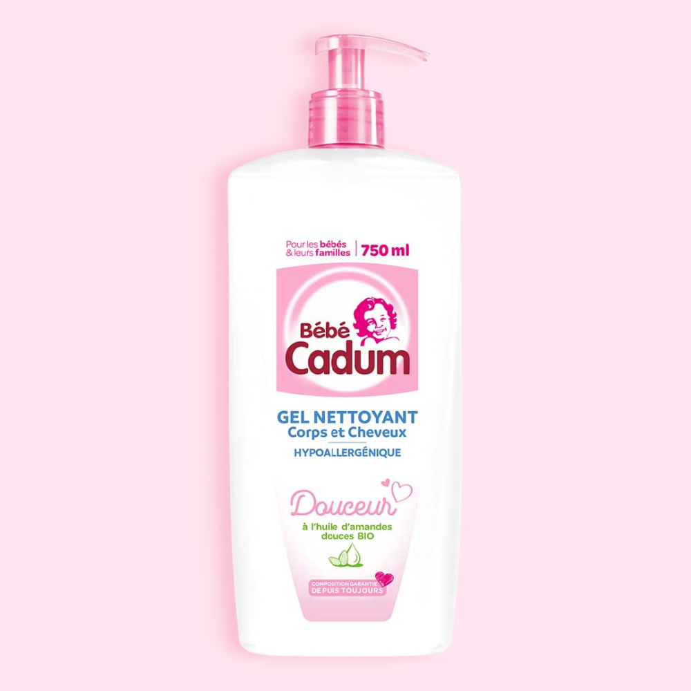 - Bébé Cadum, spécialiste de la douceur depuis 1907, a mis tout son savoir-faire dans ce Gel Nettoyant Corps et cheveux enrichi en huile d'Amandes douces Bio, pour nettoyer en douceur la peau sensible de bébé. Sa formule hypoallergénique, testée dermatologiquement, est si douce qu'elle convient parfaitement aux peaux délicates des Bébés.