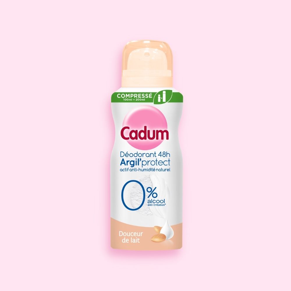 Cadum, spécialiste de la douceur depuis 1907, a mis tout son savoir-faire et son expertise dans ce Déodorant Argil'Protect Douceur de Lait. Sa formule enrichie à l'argile blanche, actif anti-humidité d'origine naturelle respecte le mécanisme naturel de la transpiration, absorbe l'humidité et vous garantit 48h d'efficacité contre les mauvaises odeurs. Sans alcool**, ce déodorant aux propriétés adoucissantes et enrichi en extrait de lait d'amande douce bio prend soin de la peau sensible de vos aisselles et laisse une sensation de confort sur la peau. Format compressé 100ml: moins d'emballage qu'un format 200ml, autant d'utilisations.