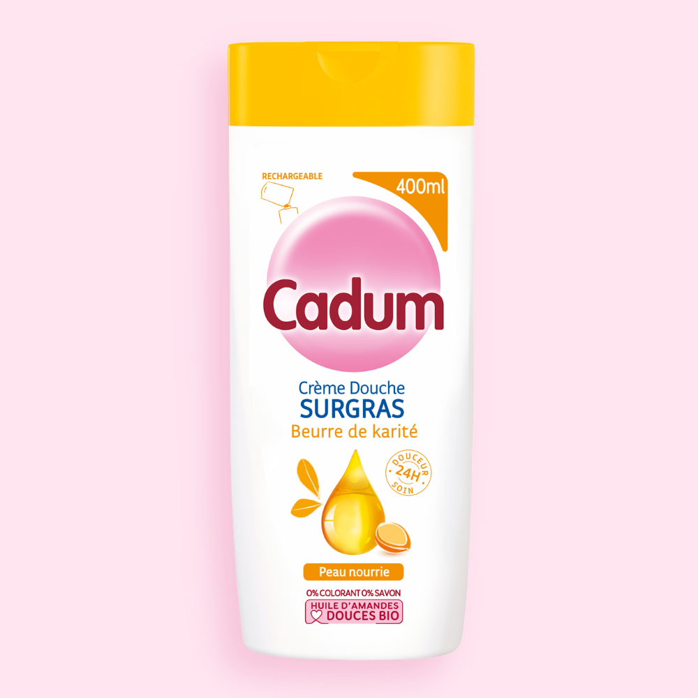 Cadum, spécialiste de la douceur depuis 1907, a mis tout son savoir-faire dans sa crème de douche Surgras au Beurre de Karité.