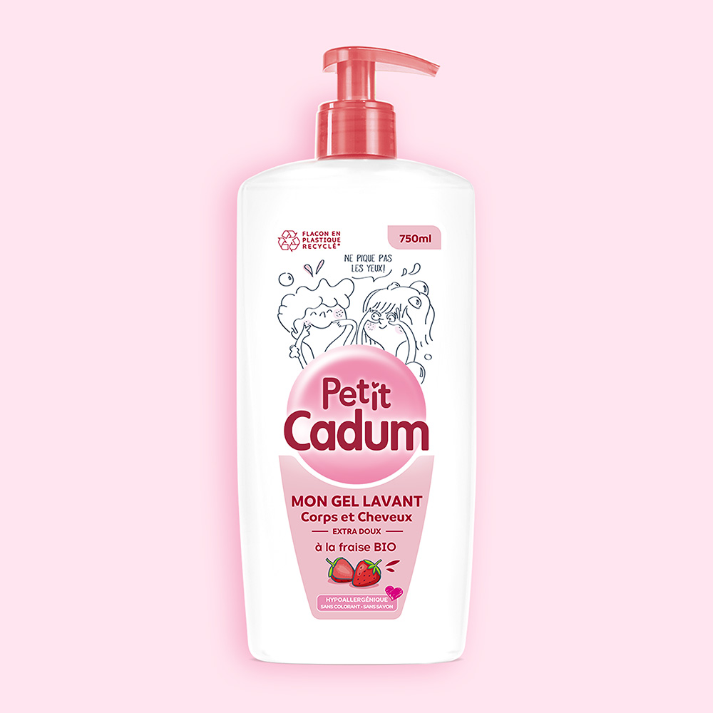 - Petit Cadum a mis tout son savoir-faire dans son gel lavant Corps et Cheveux à l'extrait de Fraise BIO.