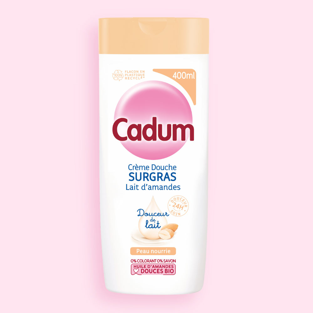 Cadum, spécialiste de la douceur depuis 1907, a mis tout son savoir-faire dans sa crème douche Surgras idéale pour materner les peaux sèches de la famille*. Sa texture onctueuse au parfum réconfortant enveloppe la peau pour une sensation de cocooning immédiat, et vous apporte soin et douceur pendant 24H. Votre peau est nourrie, confortable et aussi douce qu'une peau de bébé.